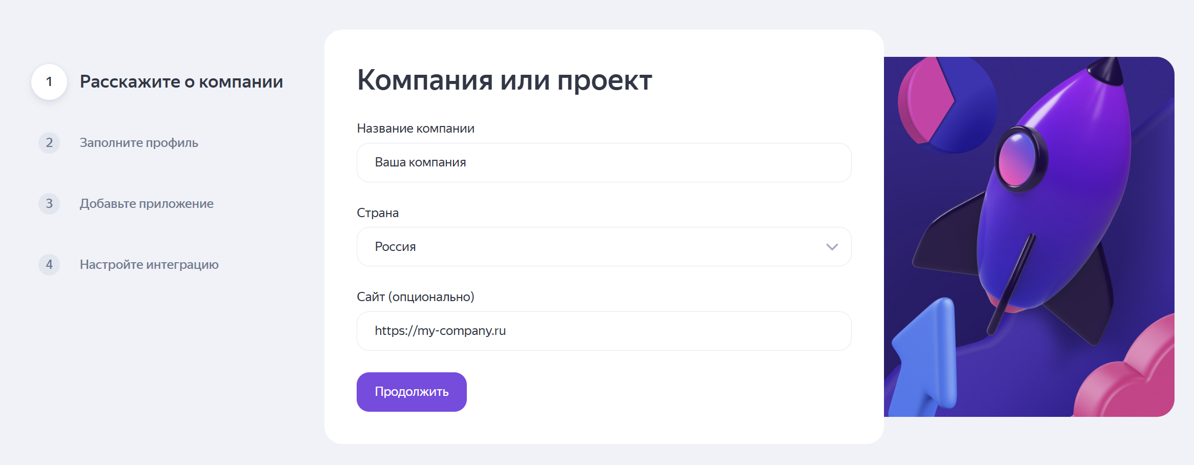 Если приложений несколько, укажите одно из них. После создания кабинета вы сможете добавить остальные.