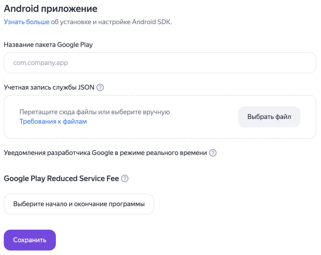 Если вы зарегистрированы в программе Google Play Reduced Service Fee, укажите даты действия.