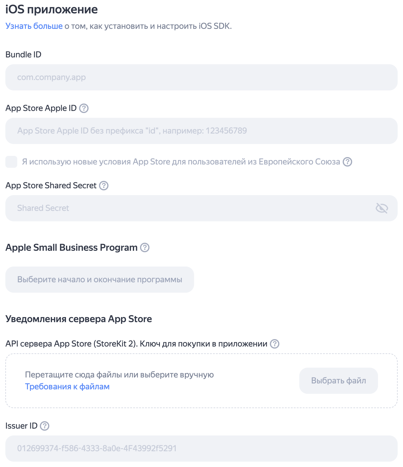 - Вставьте Shared Secret для приложения в поле App Store Shared Secret.